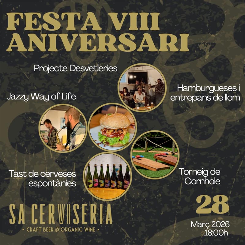 Festa d’aniversari de Sa Cervisseria Data març 28 2026 Caducat! Hora 18:00 - 22:00 Comparteix aquest esdeveniment