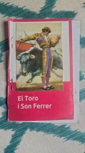L’home que acompanya el toro, un senyor de fins cabells platejats clars sobre un front acobrat, amb la camisa oberta, riu sonorament. Una rialla musical, alegre, gairebé assajada. El senyor li apropa la mà, de cuir i coure al nin curiós. Li agafa el bracet i l’estira fins a fer-lo aterrar damunt el cap inclinat del toro, d’ulls més nitencs que la seva pell.