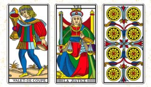 En aquesta Tríada de Tarot s’analitzen l’energia de EL PATGE DE COPES, LA JUSTÍCIA I EL VUIT D’ORS: Una inspiració o missatge emocional sospesat amb rectitud i balanç, que dirigeix l’enfocament cap a la dedicació i l’aprenentatge pràctic per assolir la mestria.