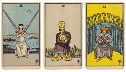 L’anàlisi de la Tríada comprèn El Dos d’Espases, El Quatre d’Ors i El Nou de Copes. Es tracta d’una configuració on l’aïllament voluntari i la postura de braços plegats sostenen una estabilitat que culmina en un triomf privat.