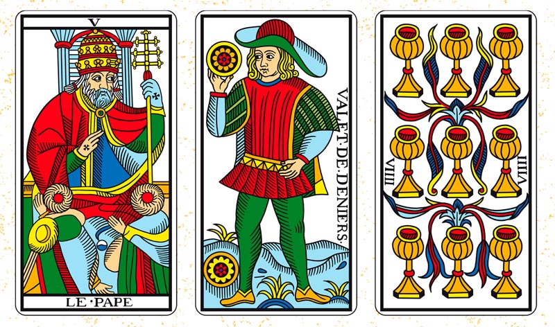 En aquesta Tríada de Tarot s’analitzen l’energia de EL PAPA, LA SOTA D’ORS I EL NOU DE COPES: Guia moral que facilita un nou aprenentatge o pla de valor, culminant en la plena realització de desitjos.