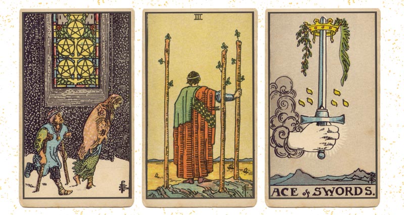En aquesta Tríada de Tarot analitzem la dinàmica entre el Cinc d’Ors, el Tres de Bastos i l’As d’Espases: un recorregut vital on la superació de l’escassetat i la planificació de l’avenir culminen en la determinació d’una voluntat lúcida i ferma.