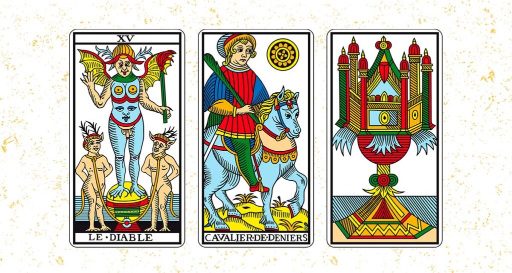 En aquesta Tríada de Tarot aprofundim en l’energia de EL DIABLE, EL CAVALLER D’ORS I L’AS DE COPES per al teu Creixement Personal i Espiritualitat.