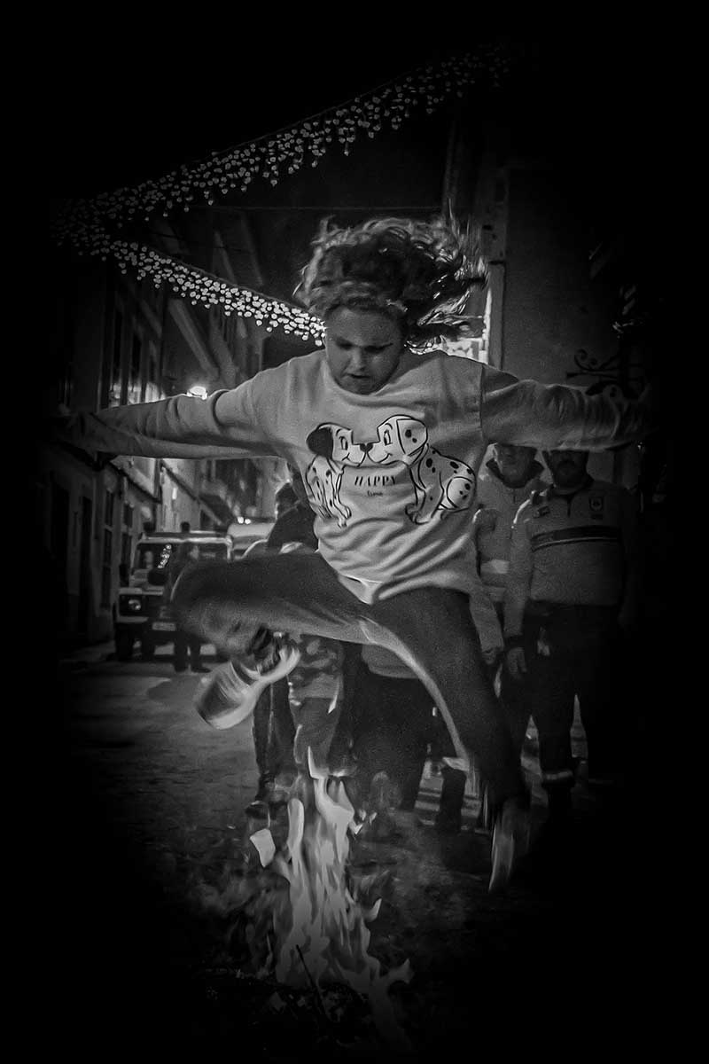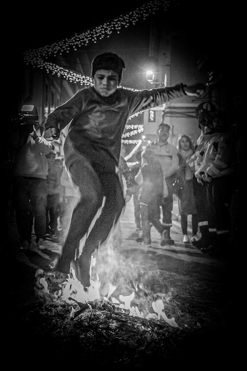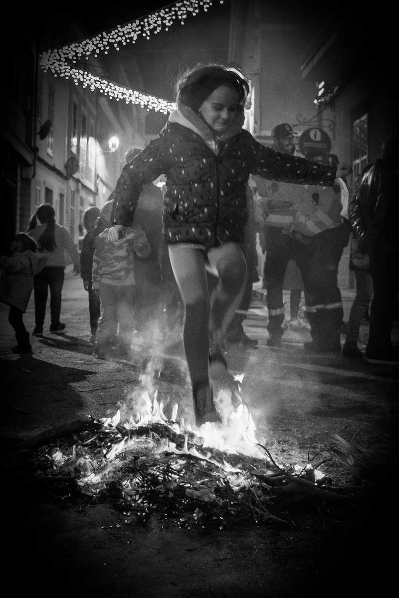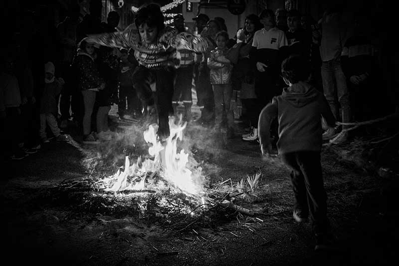 Botar damunt del foc és símbol de purificació, també de valentia. Acompanyar amb foc a sers grans és senyal de reconeixement i afecte. Una ritual d’iniciació a una nova vida.