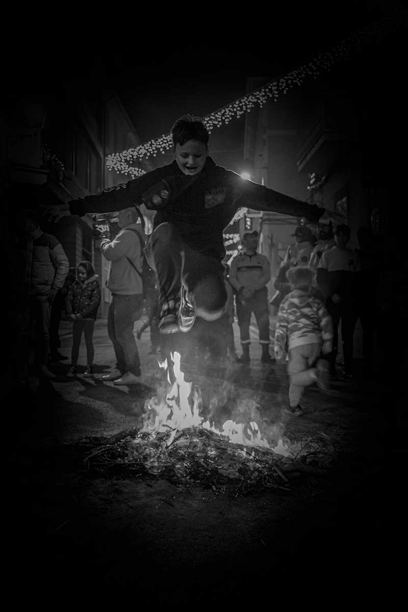 Toni Alzina aprofundeix en la dimensió poètica de les imatges. Investiga els punts en comú entre la fotografia, la festa i la poesia. Entre l’instant i allò permament, entre la llum i el temps. Alzina ens mostra el vincle poètic entre els nins i el foc, entre Capdepera i la festa. Mirau les cares, les expressions dels nins quan boten. La força de les imatges van més enllà del documentalisme i de l’instant decisiu, ja que es carrega d’una poètica visual, d’emocions que acaronen cada foto. Aquestes imatges ens permeten accedir al seu paisatge interior des de l’òptica del possible, del poètic, de la immaterialitat de la paraula i el delit visual.