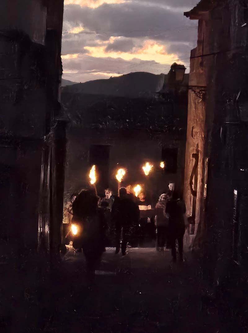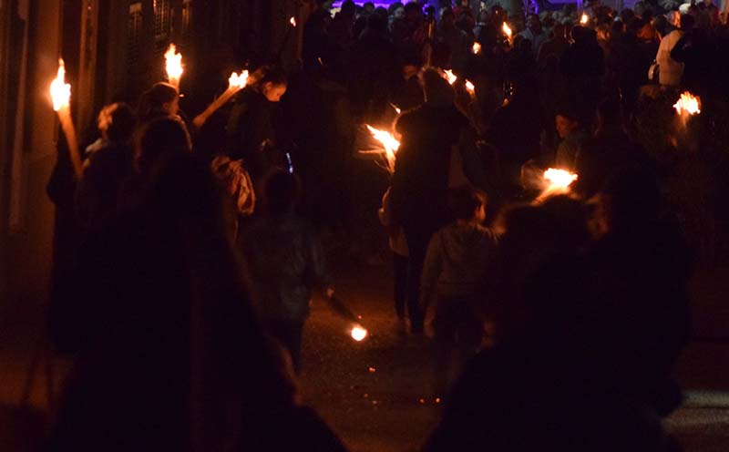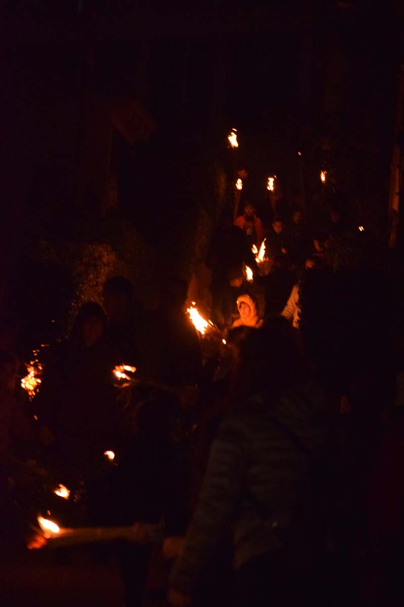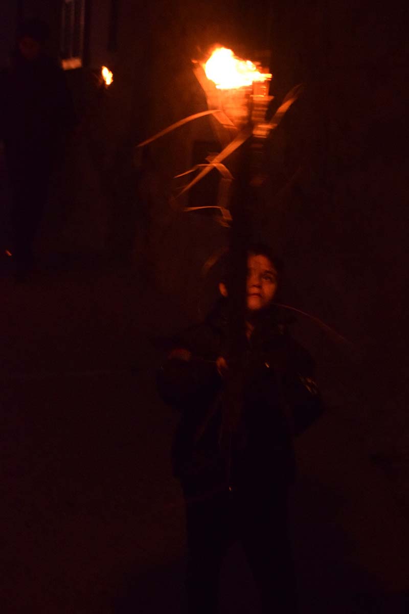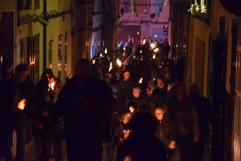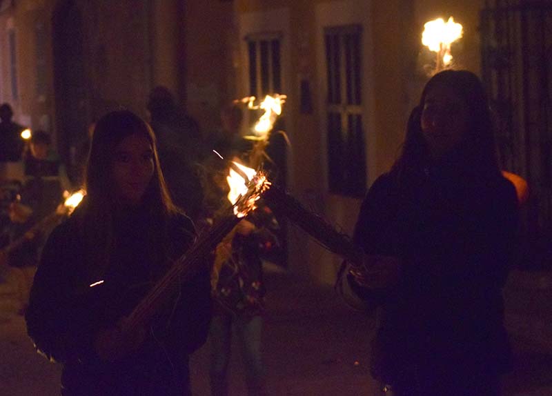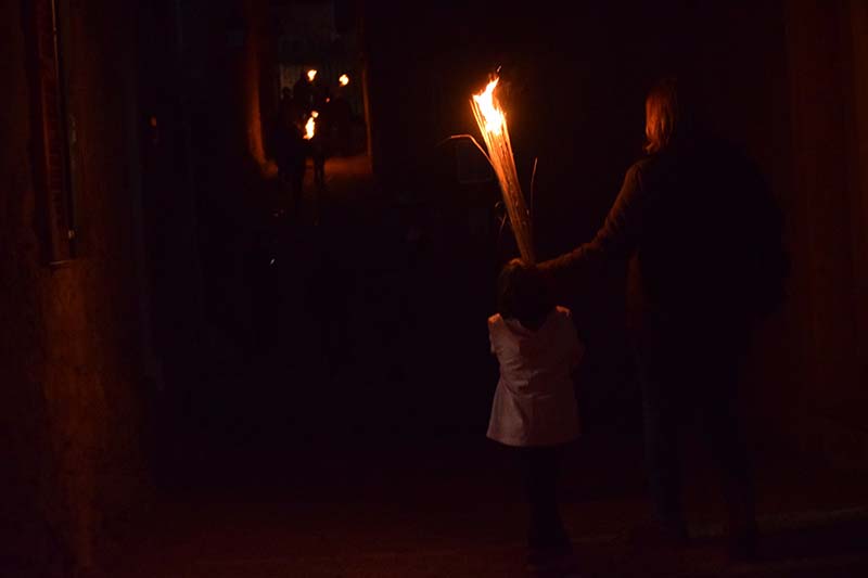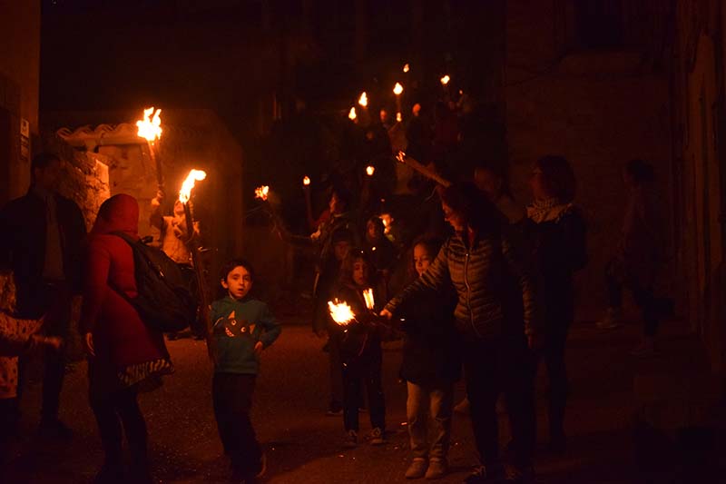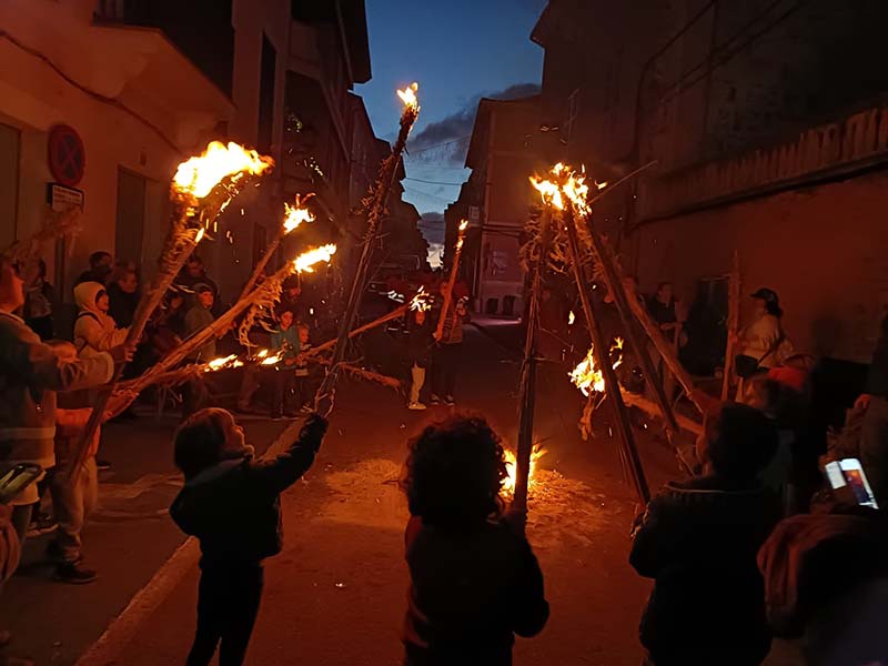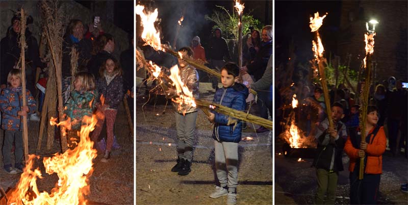 Poc abans de les 6, quan tot ja es fosc, s’apagaren les lluminàries artificials dels carrers del casc antic del poble i començà l’encesa de faies.
