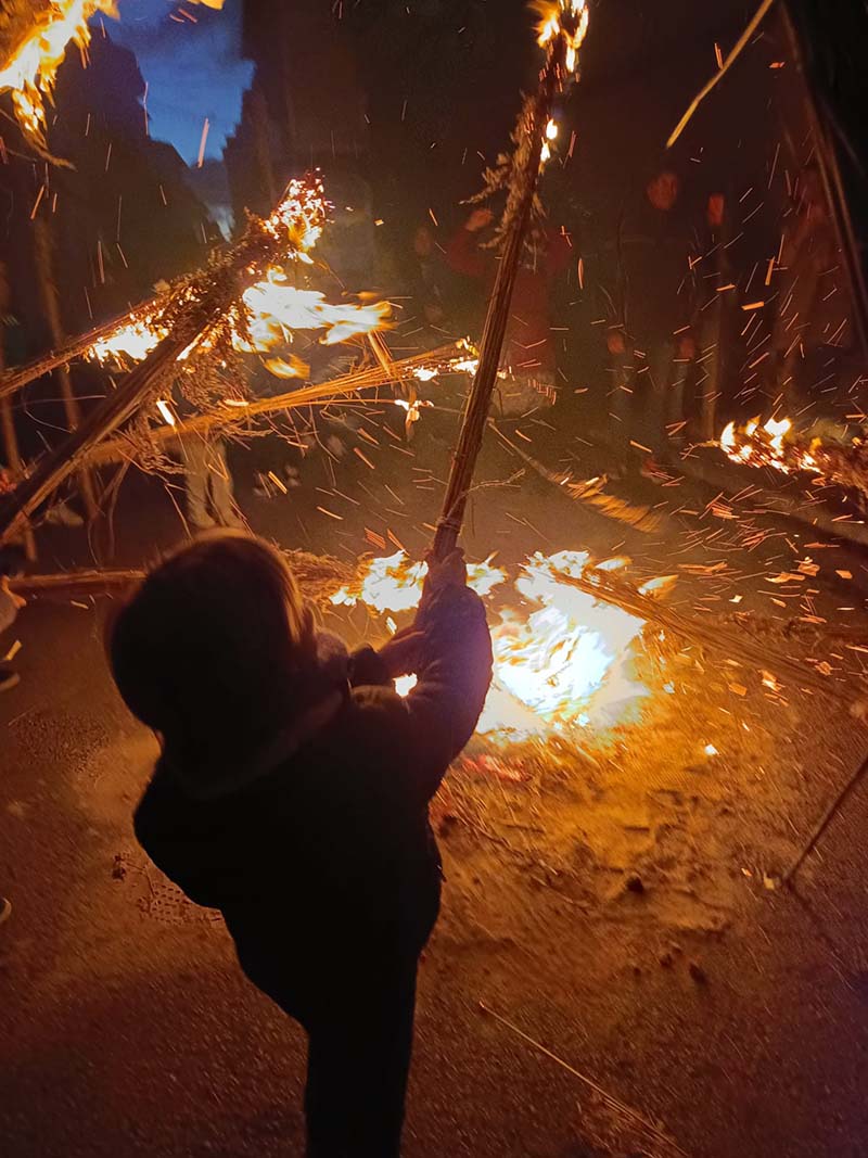 La festa és tan senzilla com intensa, recorda quan el dissabte de Nadal, entrada de fosca, els padrins feien uns focs en mig dels carrers i els nins i nines podien jugar amb foc. Una festa d’arrels precristianes que coincideix amb el solstici d’hivern i que celebra que el dia ja comença allargar-se i que la claror s’imposa a la fosca.