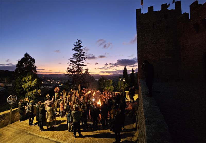 I arriba el moment d’agafar la faia i pujar al Castell, sobretot els més grans, tot i que també n’hi havia de petits. Sortim del Castell veient l’horitzó rogent de la posta de sol i així feim la volta més llarga. També n’hi ha que esperen abaix, al carrer Centre on hi ha un altra foc.