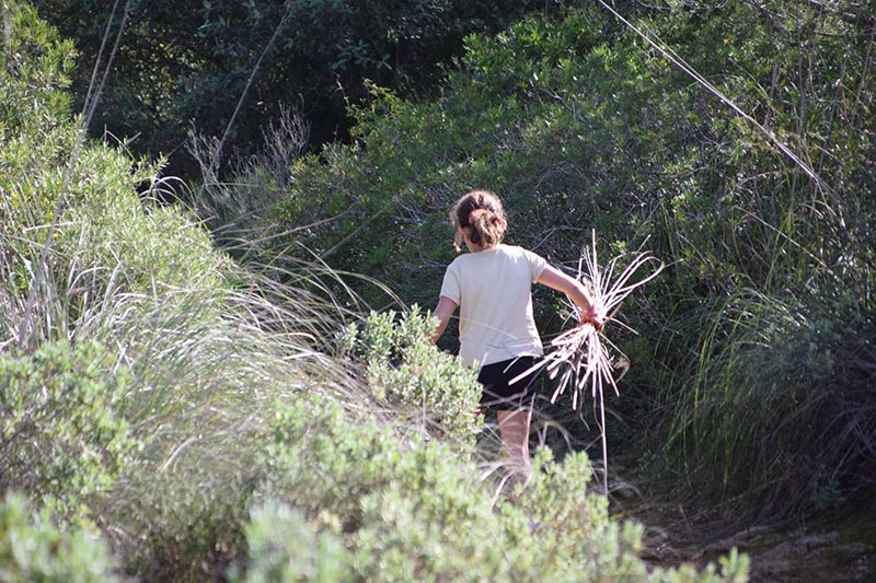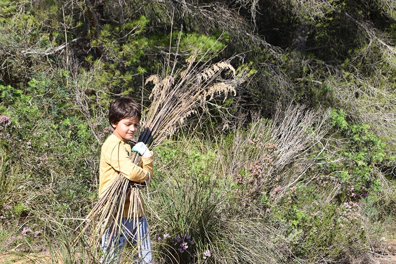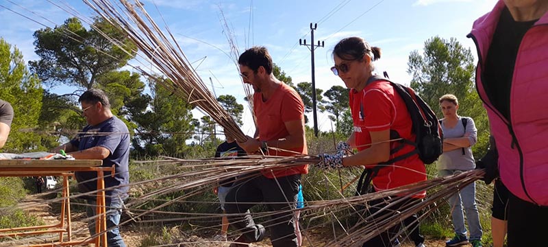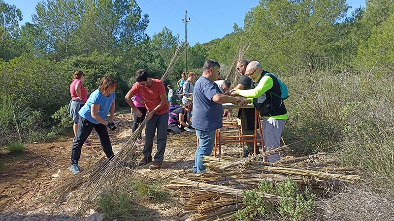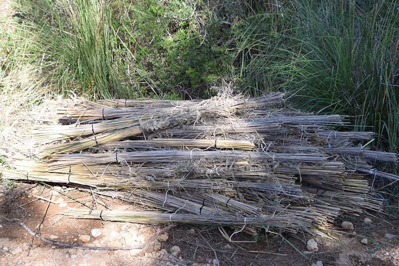 Tothom portava guants i tisores. I tot just començar ens adonarem que les faies eren molt seques. Ens especialistes en la matèria ens digueren que eren faies de l’any passat, que enguany al no haver plogut les carritxeres havien fet molt poques faies. Aquest fet ens facilità la feina ja que sols s’havien d’estirar. I, a més, no caldrà posar-les damunt del forn perquè són ben seques.