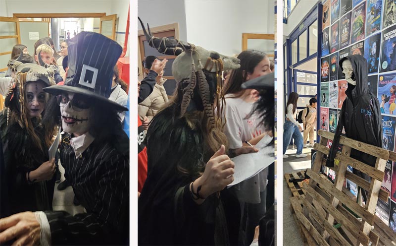 L’IES no fa rueta, però viu el Carnaval amb propostes ben originals. Enguany coincidint divendres, amb dia 13, alumnat i professorat es disfressaren de personatges de pel·lícules de por. A l’entrada es muntà un escenari amb còpies de cartells de pel·lícules on grups es feien fotografies.