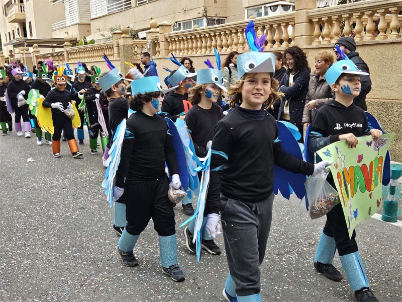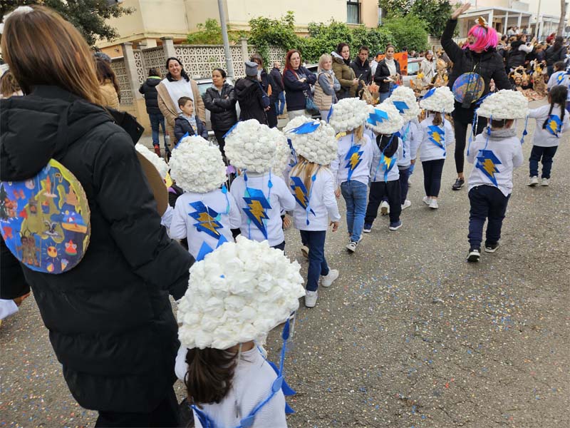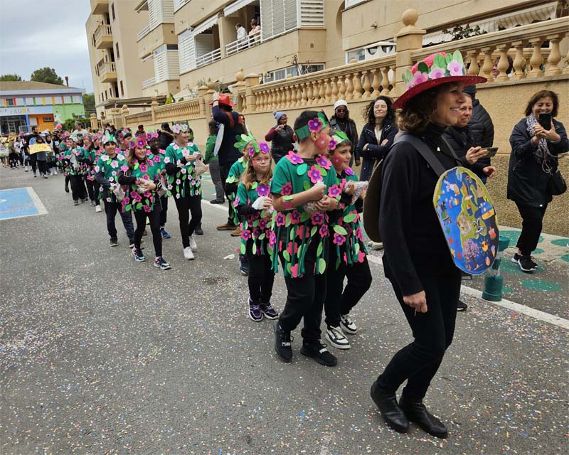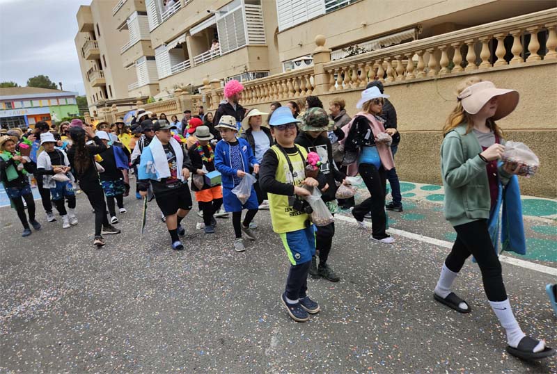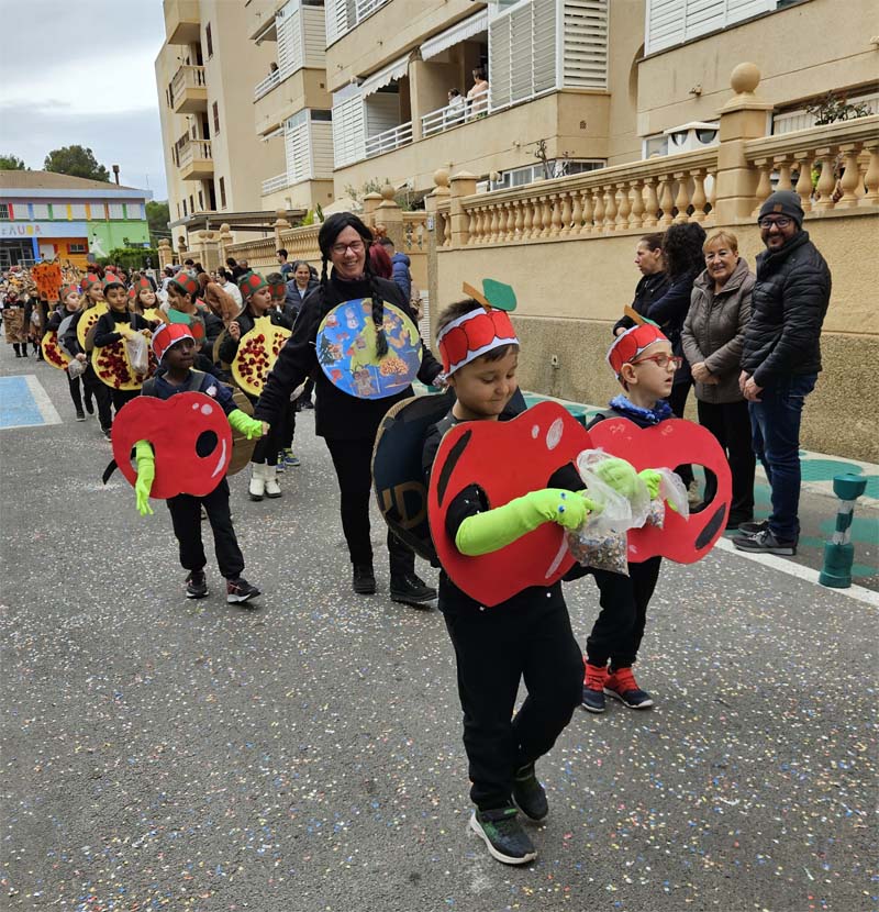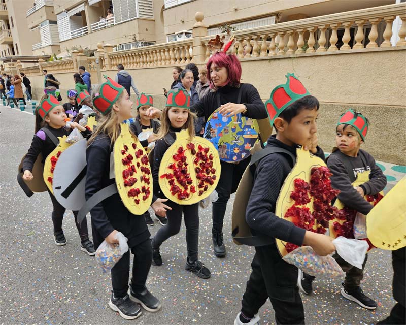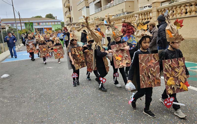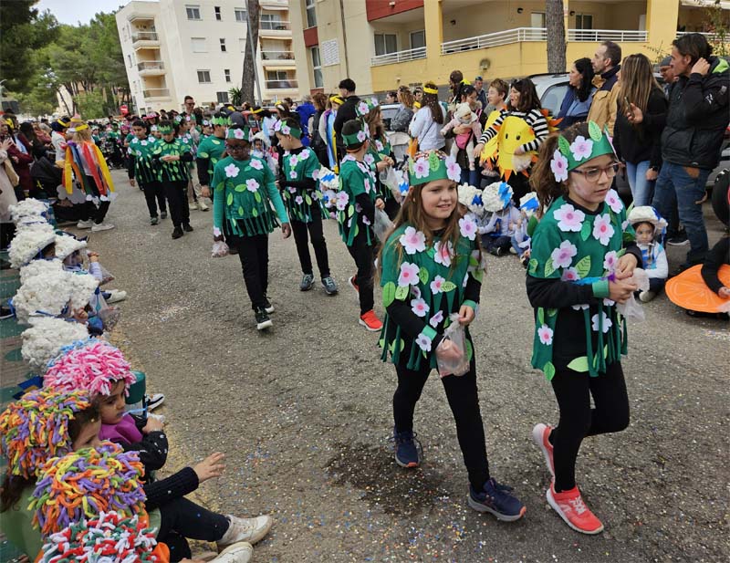 Com és habitual davant de la rueta han marxat els infantons de l’escoleta Eriçons acompanyat de pares i mares i el professorat, i seguidament l’alumnat de s’Auba per cursos, primer Infantil i després els de Primària. Com hem comentat les disfresses anàvem ordenades per estacions i davant de cada una, a més del cartell indicatiu duien música ballable.