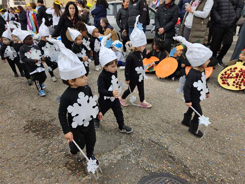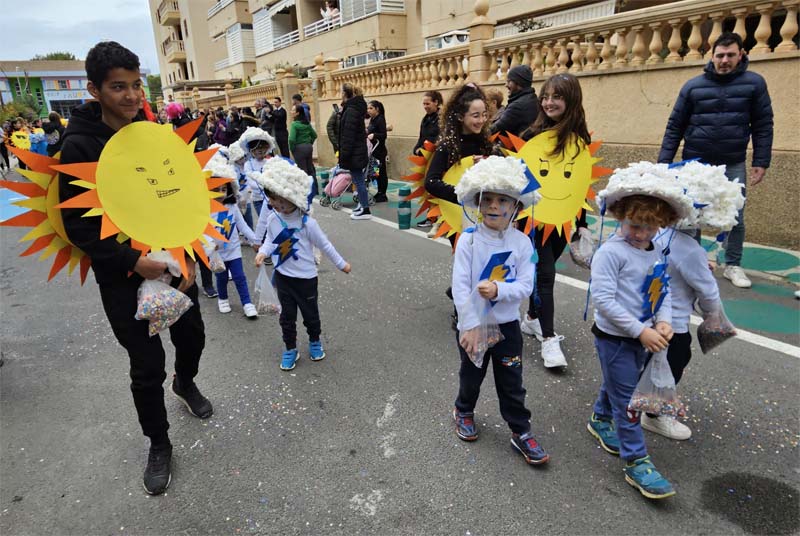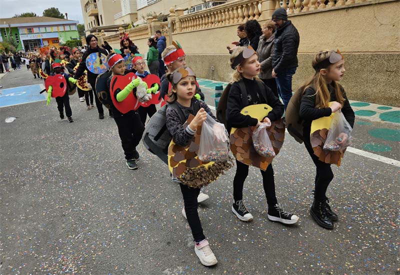 El temps, ennigulat i lleugerament ventós, pot ser ha fet que la presència de espectadors hagi estat una tant inferior a altres anys, però pares i mares, familiars i amics no s’han perdut l’original i acolorida rueta dels més petits. Enguany el tema triat ha estat les estacions i a partir d’aquí la imaginació del professorat i alumnat ha creat uns disfresses ben encertades.