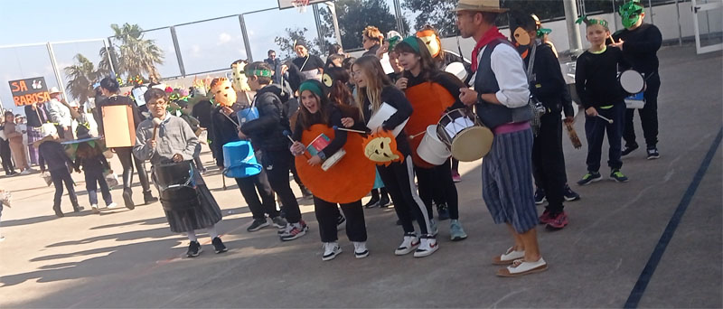 Dues batucades dels propis alumnes han donat la nota musical al passa-carrers.