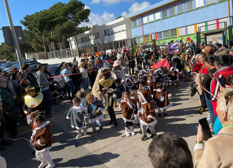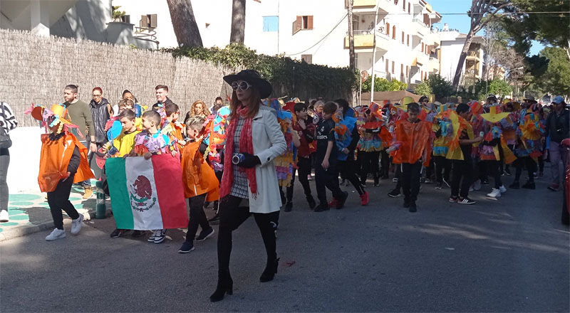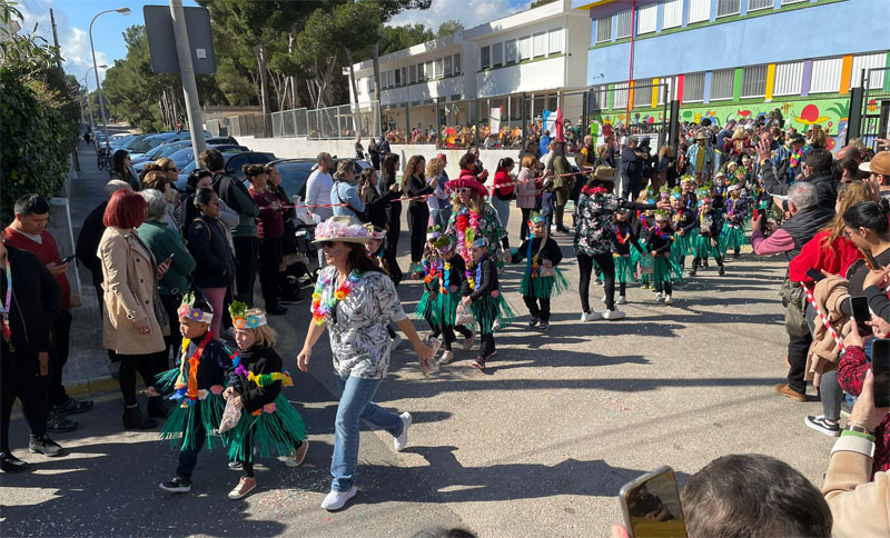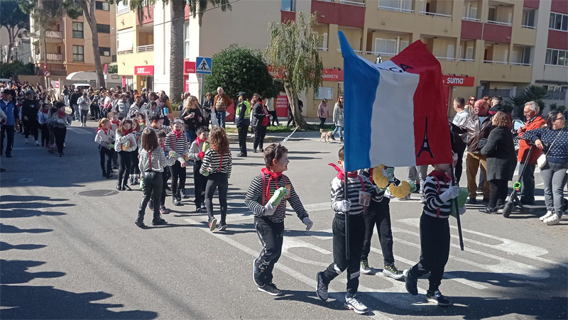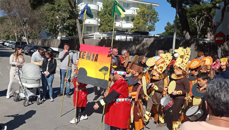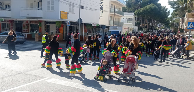 L’escola s’Auba va sortir devers les 13 hores per a fer una volta per Llegítimes, Sant Andreu, Cala Agulla i Floreal. La temàtica d’enguany anava al voltant de països. Obria la rueta els infants de l’escoleta Eriçons duts pels seus pares i mares, amb una disfressa d’aire tropical, brasilera. Els grups de s’Auba duien un cartell indicatiu del país o cultura que representaven: Alaska, Xina, Hawai, França, Itàlia, Espanya, Mèxic, Kenia, Egipte…