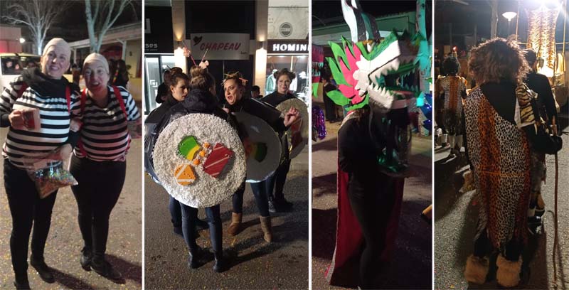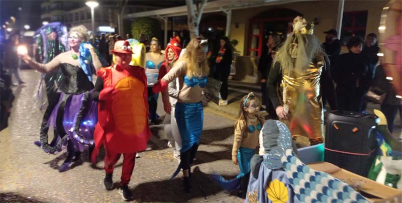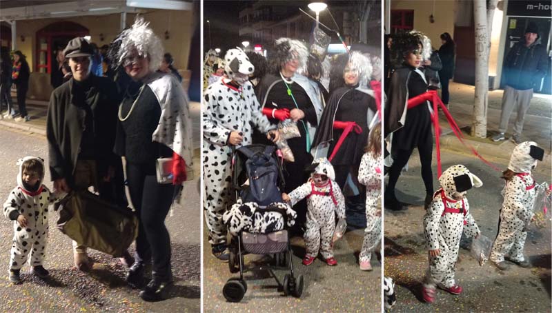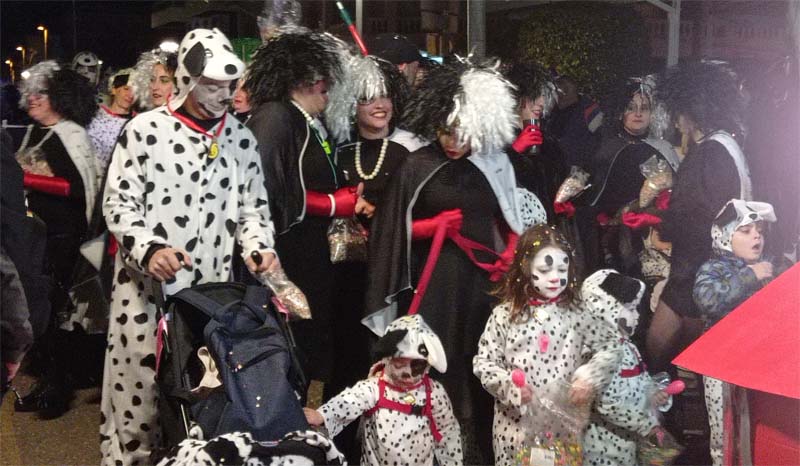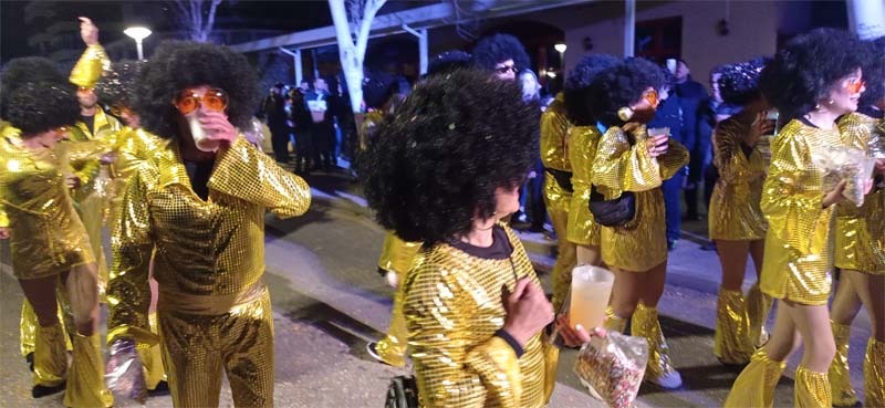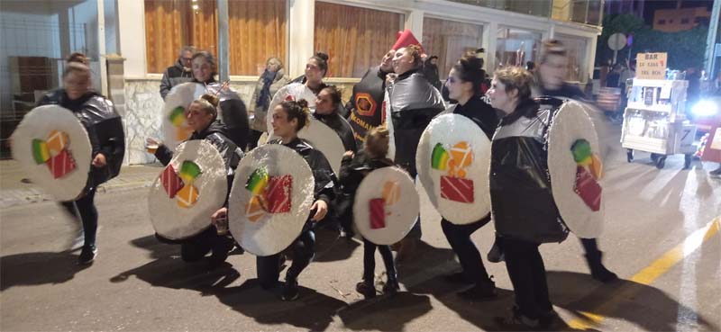 Tot seguit desfilaren les comparses amb diverses temàtiques: La tribu massai, el grup de salsa, El Circ, Alicia al País de les Meravelles, na Cruela amb els seus dàlmates, Els víkings, Els dracs, El Sushi time, la Discoteca, La Sireneta, L’Arca de Noé… Com fa anys hem trobat a faltar més disfreses individuals o petits grups, com ara els vestits venecians o el petit bar.