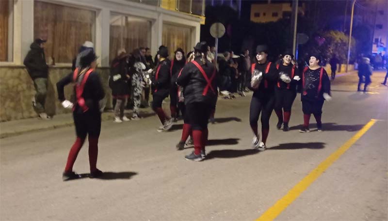 Amb una nit freda, però serena, les comparses participants a la Rua de Cala Rajada han tornat a mostrar un gran nivell. Els espectadors que omplien les voreres del carrer Elionor Servera, van gaudir de un passa-carrer ple d’imaginació amb disfresses ben originals, algunes coreografies i música a tota “marxa” a les carrosses que obrien cada comparsa.