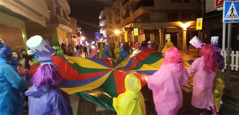 Divendres, 9 de febrer, va ser un dia carnavalenc per Cala Rajada. De matí la Rueta de s’Auba i pel capvespre la Rua. A les 19,30 les comparses se van concentrant al carrer Reis Catòlics i començaren la desfilada pela carrer Elionor Servera fins la plaça dels Pins on voltaren per cercar el carrer Menorca i tornar al carrer Elionor Servera fins la plaça dels Pins. El canvi de ruta s’atribueix a les obres de l’antic hotel Tucán.