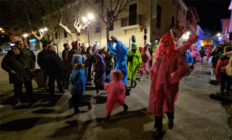 Poc podem afegir al que comentaren a la Rua de Cala Rajada, pràcticament participaren les mateixes comparses, per tant només ressenyar la gran participació i vistositat de les propostes. Continua la tendència a desfilar per grups més o manco grans, amb música pròpia i carrosses, en detriment de la disfressa individual i de petits grups. Això dona més espectacularitat i, pot ser, anima a més gent a participar. I és que els disfressats s’ho passen molt bé, amb balls i coreografies transmetent alegria.