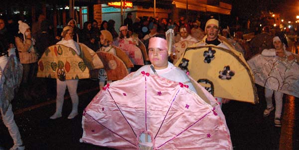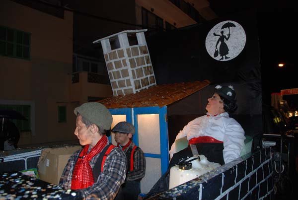 Música, color i animació per a una rua amb més participació que mai. Llàstima del temps, que no volgué sumar-se a la festa, amb una brusca persistent que, d’alguna manera, deslluí una gran desfilada. Afortunadament, les denous comparses participants, a més dels petits grups o participacions individuals, pogueren completar el recorregut (just una volta) sense que, com l’any passat, s’hagués de suspendre la rua abans de començar. Les carrosses, en general, mostraren treballs molt acurats, algunes d’elles realment espectaculars. Diguem, igualment, que algunes de les comparses foren excepcionalment nombroses, fins a superar els 200 membres.
