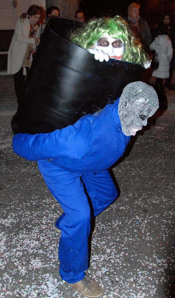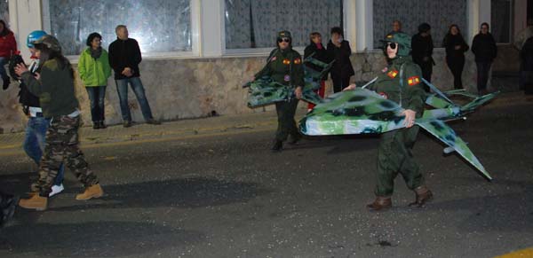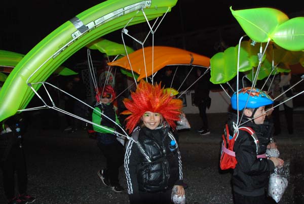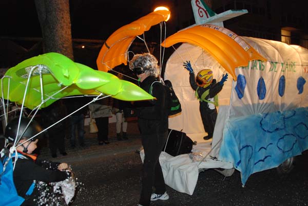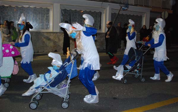 Batucap obrí la desfilada, amb el seu ritme frenètic i amb una disfressa dedicada a la música. I a darrere, tot un seguit de patufets, fades, paracaigudistes, soldats, domadors i feres, mexicans, el món de Heidi, turistes, africans, animals de la selva, pallassos… i molt més. Comparses totes elles ben originals i divertides. La Banda de Cornetes i Tambors també afegí música “en viu” a la Rua.