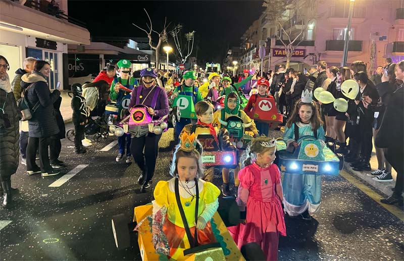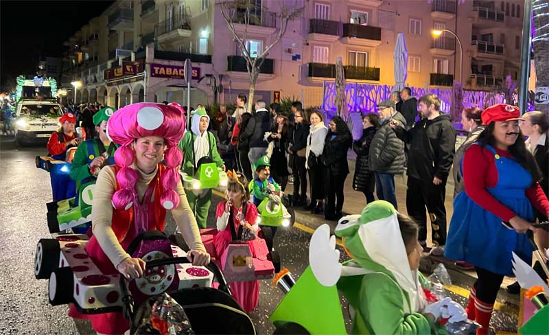 Una altra comparsa ben aconseguida (i molt acolorida) va ser la del joc d’ordinador “Mario Bross” amb tots els personatges i els cotxes de diferents colors (inclús amb llum, amb uns acabats molt acurats), una altra comparsa amb important presència d’infants.