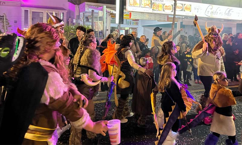 La comparsa dels víkings, amb un espectacular drac que tirava foc, i les disfresses ben variades amb diferents dracs a els esquenes.