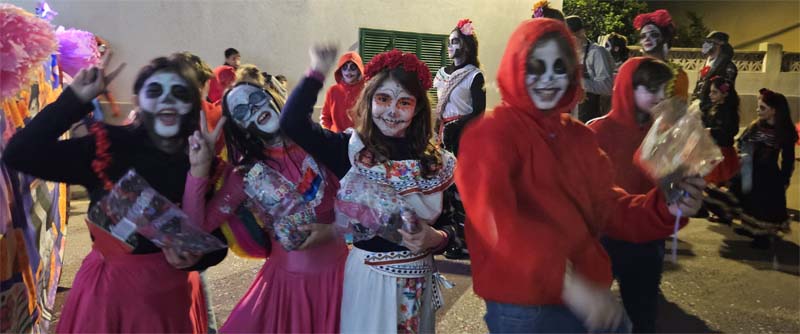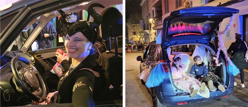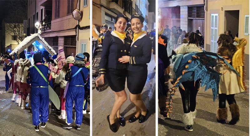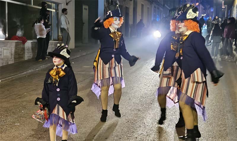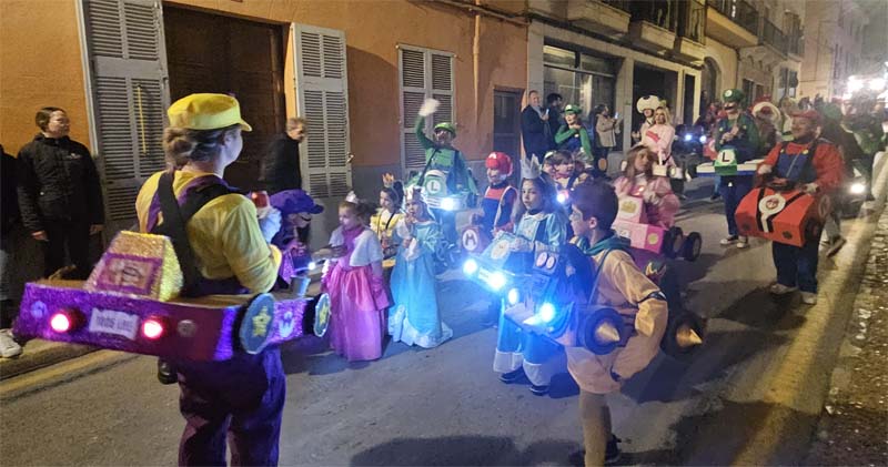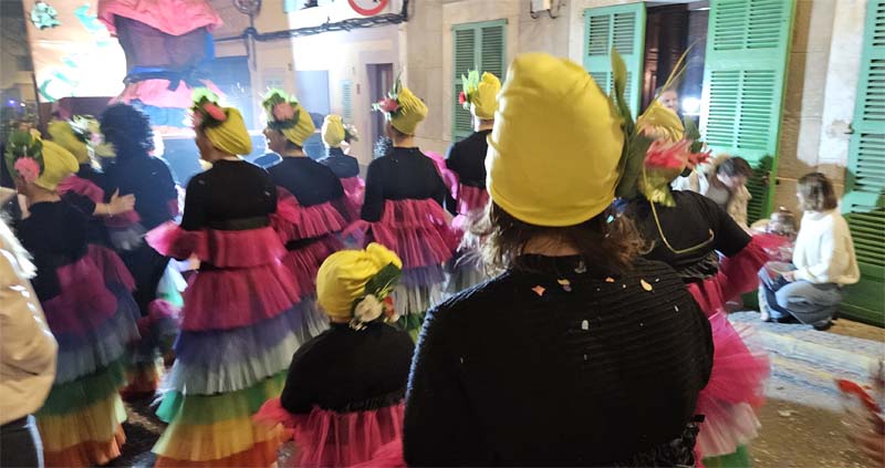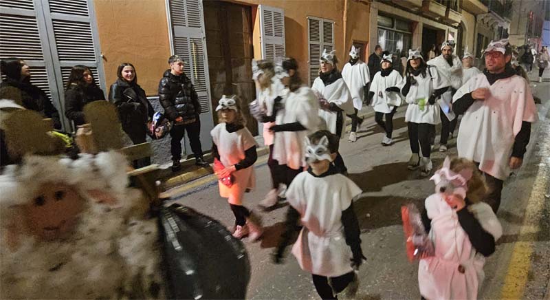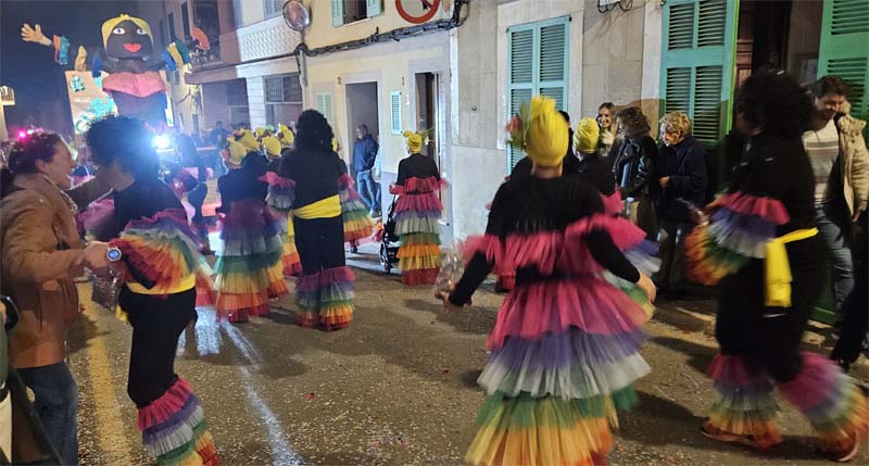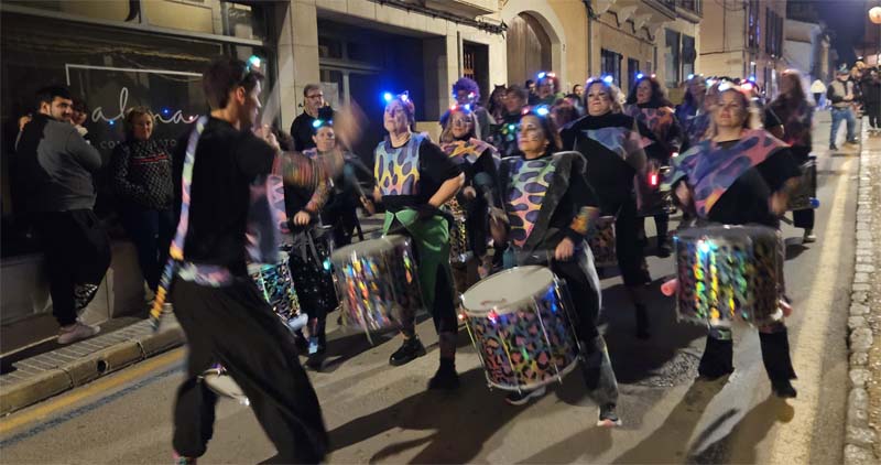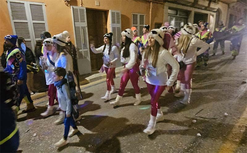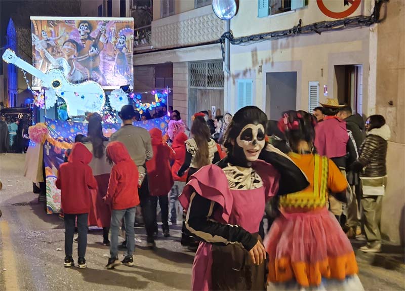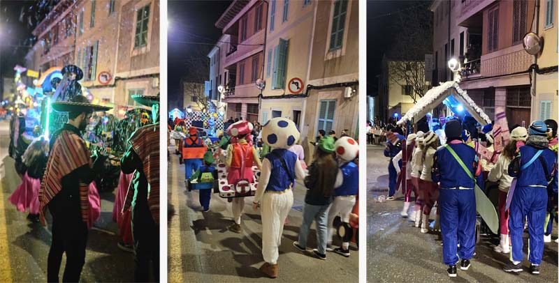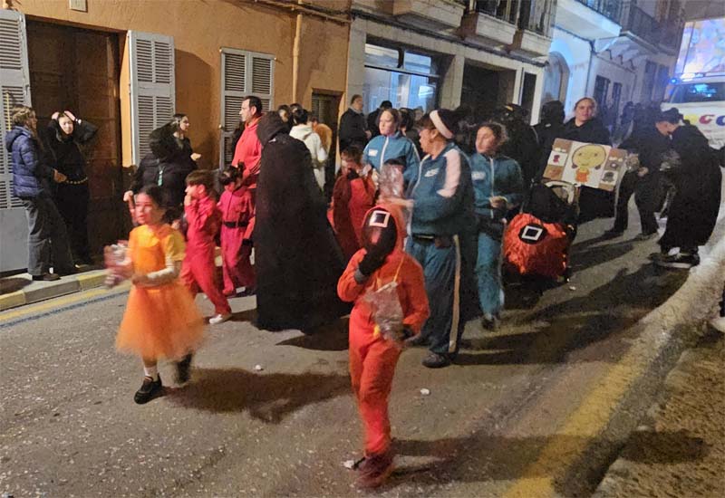 Així la batucada de Capdepera, Batucap, tornà a obrir la rua amb els seus ritmes i molta “marxa” (realment fan un gran esforç, ja que a més de sonar tot el recorregut encara les queden forces per tocar al final a la carpa del poliesportiu, per donar el sus a la festa de Carnaval). Seguidament desfilaren, més o manco per ordre, el “Joc del calamar”, “Mario Bros”,”Mexicans”, les “Ovelles fora de control”, “Futbol”, una altra del “Joc del calamar”, “Coco”, l’”Avió”, “Que ve el llop”. “Vikings” i “Cubans”.