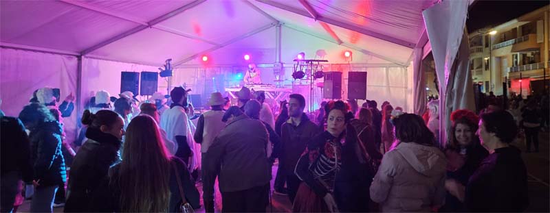 Com ja hem comentat, la Rua va acabar a la carpa instal·lada al poliesportiu on actuà Jaume Colombàs, Enrokats i Conejo Manso. El servei de bar (amb begudes i menjar) anà a benefici del Viatge d’Estudis de l’alumnat de 4t d’ESO de l’IES Capdepera.