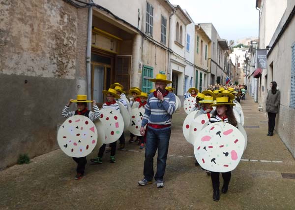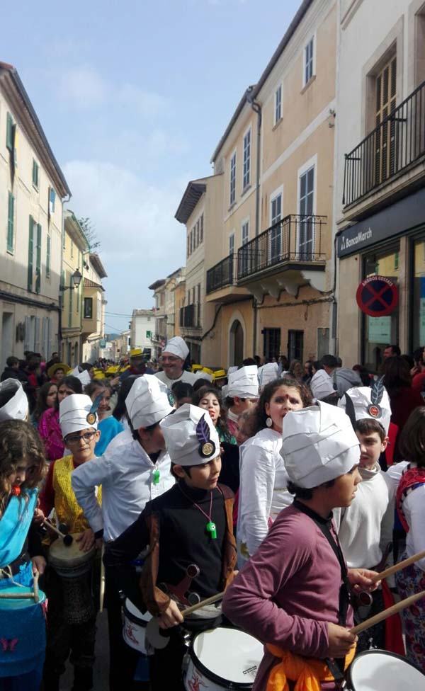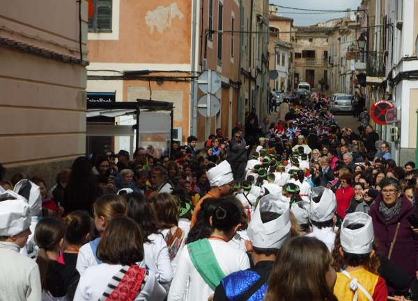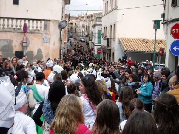 Malgrat haver-hi previsions de pluja, durant tot el matí no ha plogut i, malgrat estar ben ennigulat, la rueta s’ha dut a terme sense problemes pel recorregut habitual pels carrers cèntrics del poble. Com altres anys molta gent ha assistit al pas de la rueta. Cal dir que els menuts de l’escoleta Es Ferreret se va afegir a la desfilada del col·legi s’Alzinar amb una preciosa disfressa de xinesos.