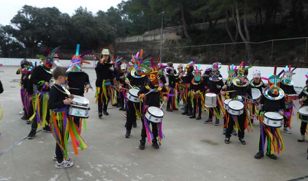 Però al color i l’imaginació, enguany s’ha destacar la part musical amb molta percussió (molts de tambors de fabricació casolana) dels propis alumnes.