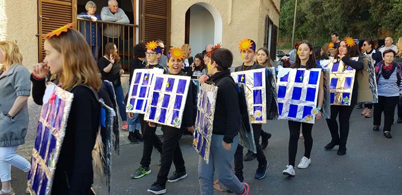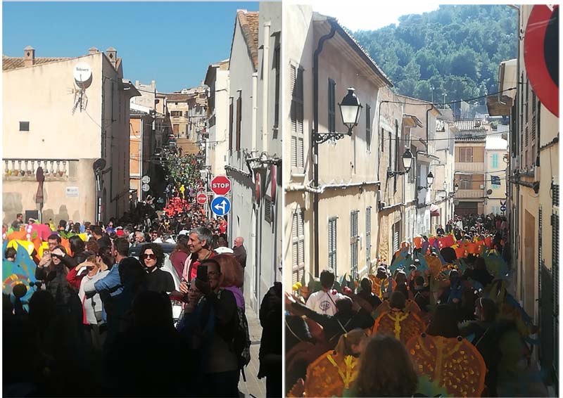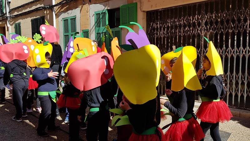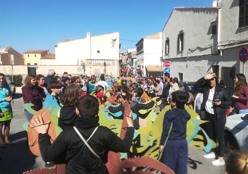 Una vegada més els alumnes van desfilar pels carrers de Capdepera (amb una ruta diferent a altres anys per la coincidència amb el mercat dels dimecres), on molts de mares i pares van sortir a veure’ls. La rueta resultà molt vistosa i acolorida, amb un bon acompanyament musical de tamborers d’alumnes del centre.