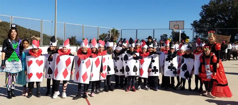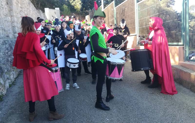 Així han desfilat personatges de contes com Blancaneus i els nanets, Peter Pan, l’Illa del Tresor, Harry Potter, El peix irisat, El monstre de colors, Elmer,Alícia en el país de les Marevelles, El flautista de Hamelín i Charlie i la fàbrica de xocolata. Com hem dit un rueta plena de color.La música ha anat a càrrec d’una “batucada” d’alumnes amb molt de ritme.
