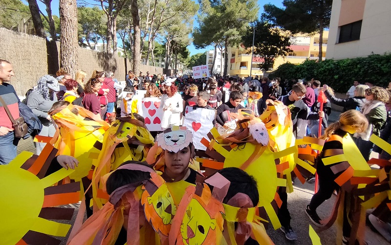 El col·legi s’Alzinar, amb els infants de l’escoleta, han fet els seu habitual recorregut pels carrers més cèntrics del poble (plaça Constitució, Sitjar, carrer Fondo, Pla d’En Cosset, carrer Centre i tornada a l’escola) amb molta presència d’espectadors. Els alumnes s’han concentrat al parc d s’Alzinar, per iniciar el recorregut ordenats per cursos, des d’infantil a 6è curs.