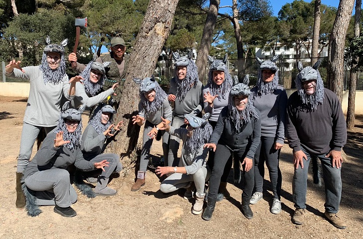A Cala Rajada enguany tocava sortir al carrer (fa anys que alternen rueta i festa al centre) i ha estat una rueta molt vistosa i molta imaginació. També estava dedicada als contes infantils, per tant han hagut algunes coincidències de temàtica amb s’Alzinar, però amb realitzacions diferents. Els alumnes d’Infantil anaven de contes en els que surt el llop com a protagonista ( Els cabridets, Els tres porquets o Caputxeta vermella ), mentre els de primària es disfressaren de personatges del Peter Pan, El moix amb botes, Hansel i Gretel, El llibre de els bèsties, El flautista d’Hamelín o Alícia en el Pas de les meravelles. L’itinerari, com hem comentat ple d’espectadors, ha estat des del centre escolar al carrer Elionor Servera, Plaça dels Pins, carrer Castellet i carrer Floreal.