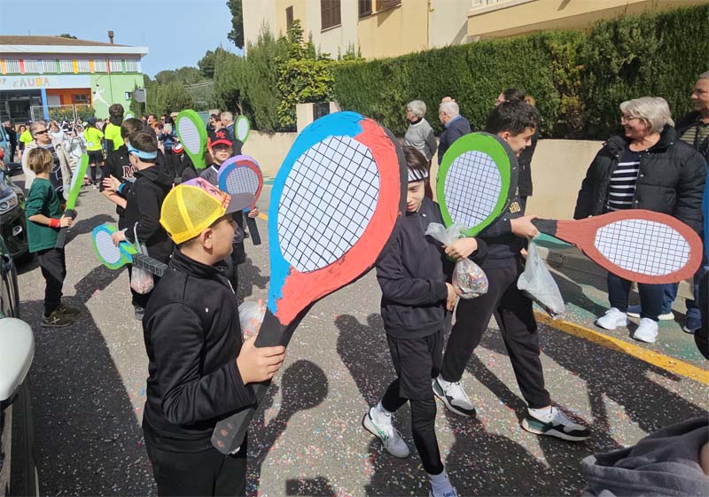 Per la seva banda la rueta de s’Auba va sortir també ben puntual, i va triar el tema dels esports. Cada curs anava d’un esport, així hem vist hípica, futbol americà, atletes, esgrima, busseig, tir d’arc, tennis,snowboard, natació sincronitzada, pàdel, etc. Els grups duien música i alguns havien preparat coreografies.