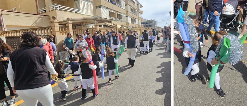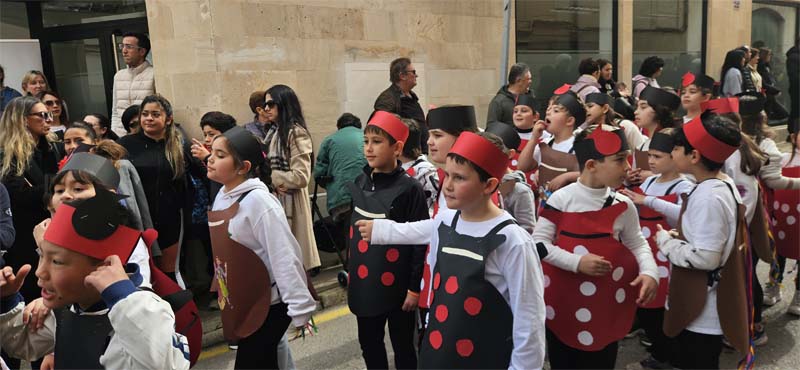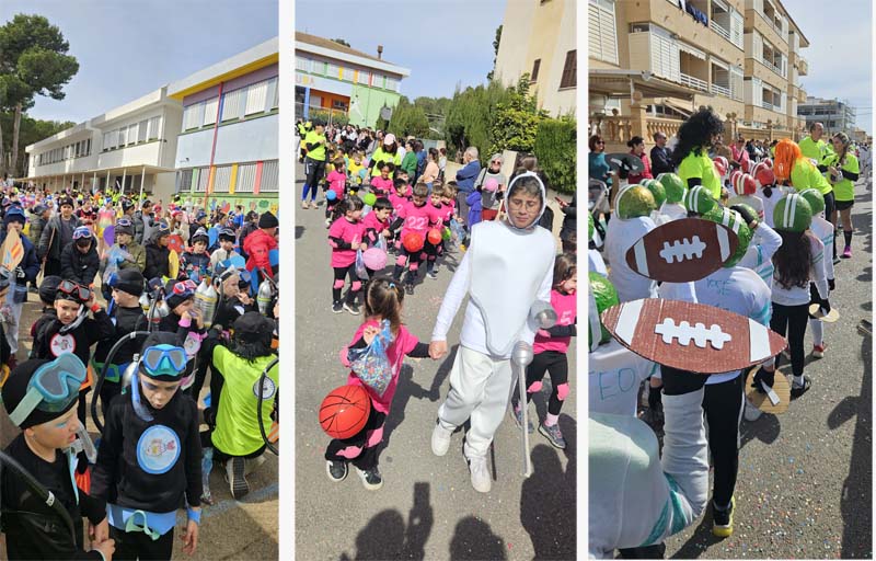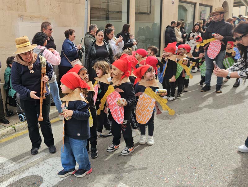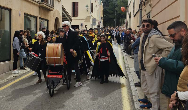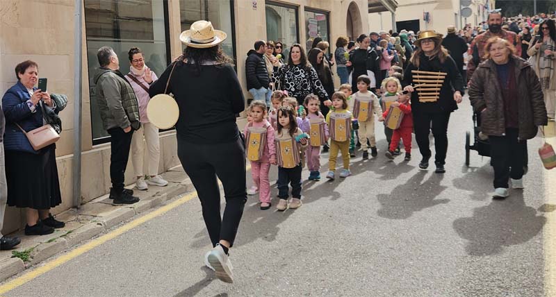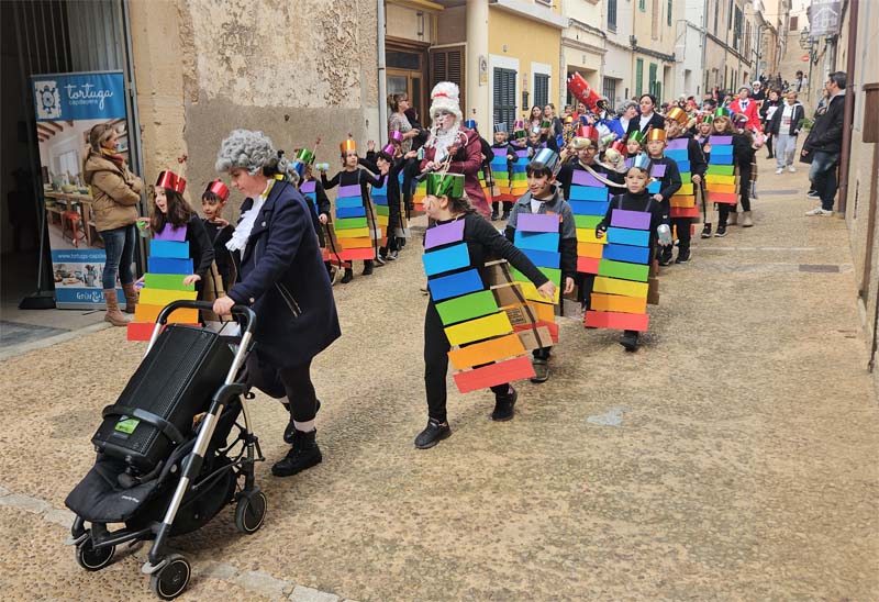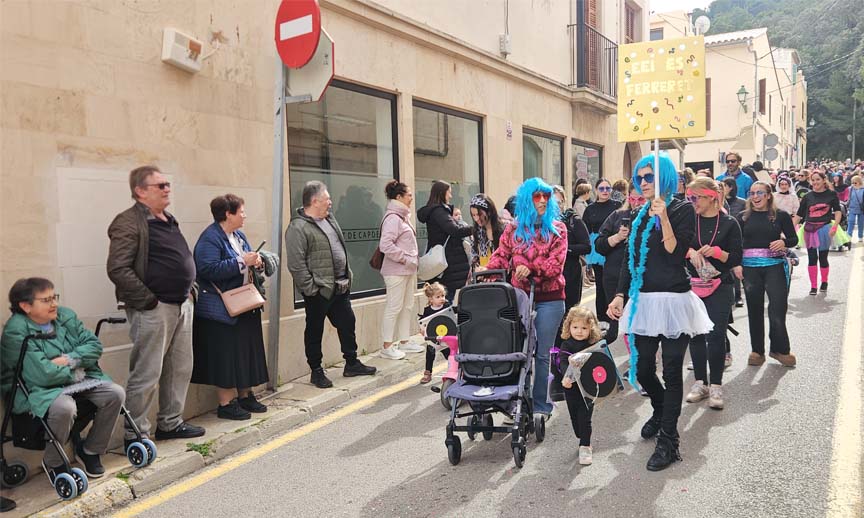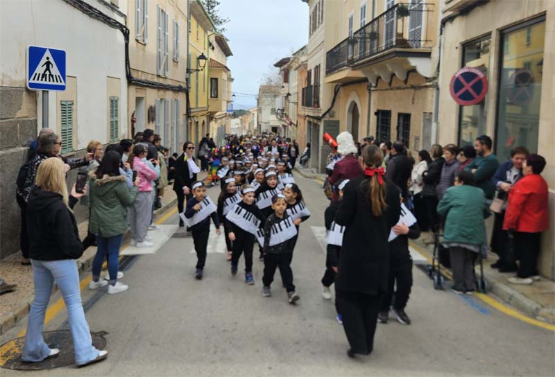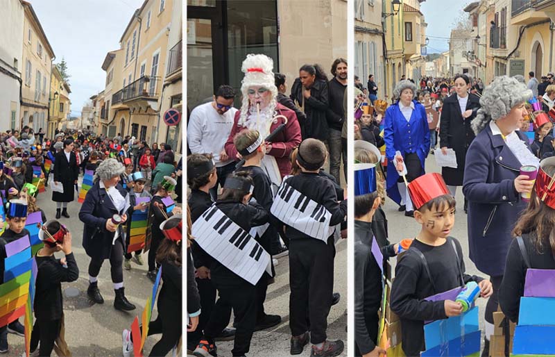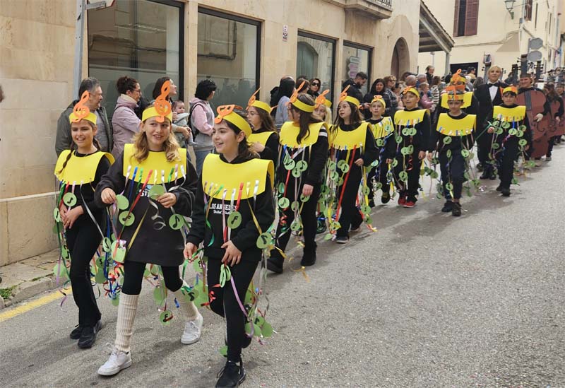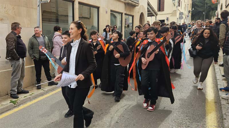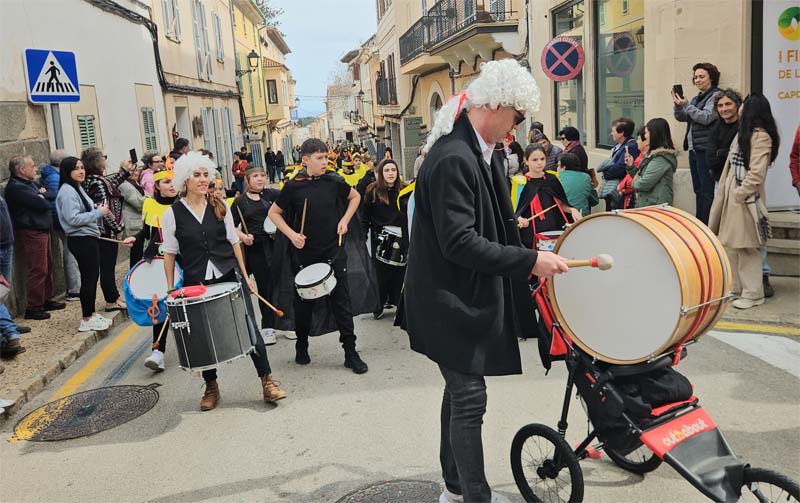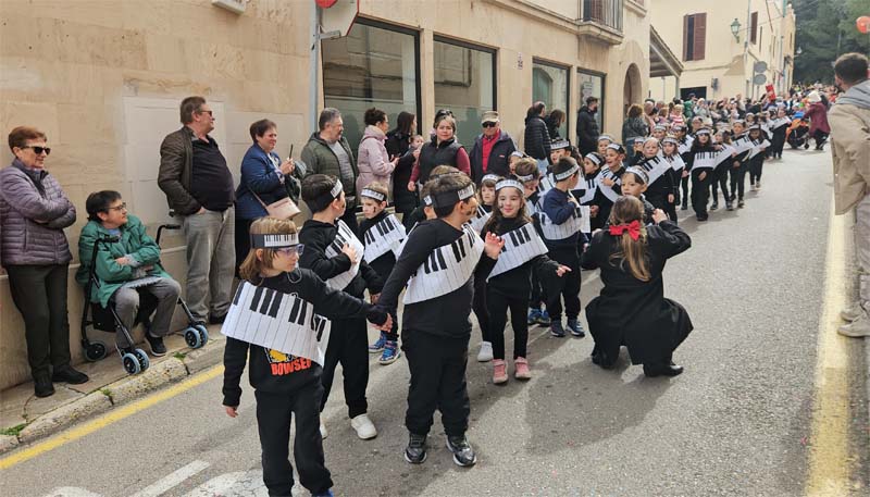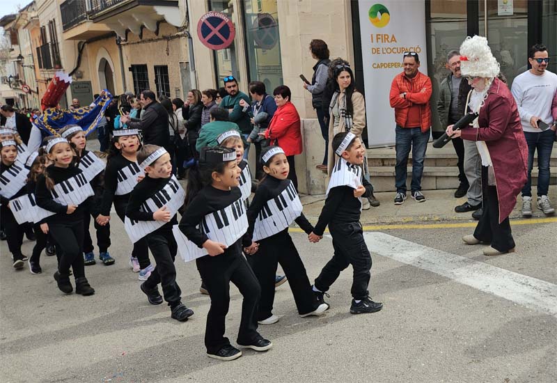 Puntualment a les 12 del migdia, la alumnat i professorat de s’Alzinar i de l’escoleta Es Ferreret, van iniciar el recorregut pels carrers de Capdepera seguint un itinerari semblant al dels darrers any. Enguany el tema triat va ser la Música, així els cursos anaven disfressats d’instruments musicals i formacions musicals. Hem vist tamboniros, vinils, xeremies, castanyetes, piano, violes, tunos, etc,