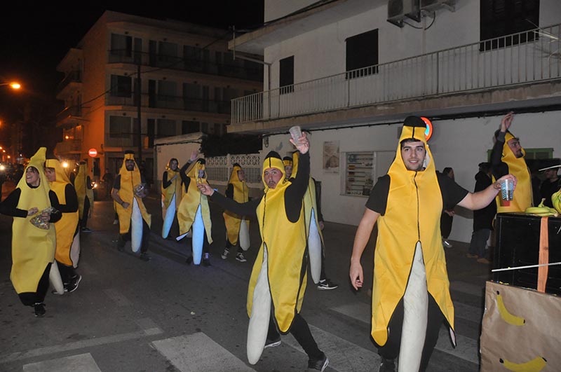 La Rua de Cala Rajada sortí puntualment del carrer Elionor Servera amb la batucada (gran Batucap!) que marcà el ritme amb música i alegria. La desfilada feu el recorregut habitual fins acabar a la plaça dels Pins on els esperava la carpa amb música DJ i el bar organitzat per l’Escolar.