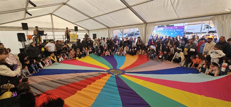 Amb les seves cançons infantils i els seus recursos van engrescar els infants que ompliren la carpa on es feia l’actuació. Presentaren als patges i els convidaren a ballar i participar en la festa.