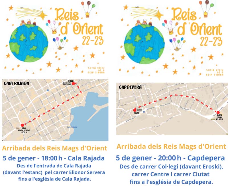 09:00 h a 15:00 h – Els Reis Mags d’Orient I els seus Patges repartiran regals a Capdepera, Cala Rajada i Extraradis.