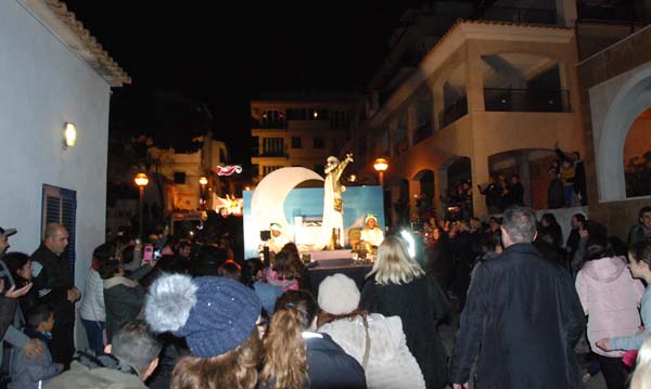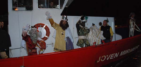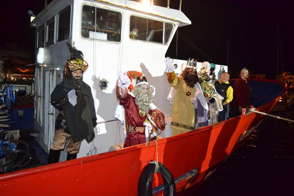 La dels Reis és una festa que es viu amb especial intensitat en el nostre poble. Enguany, afortunadament, les previsions meteorològiques fallaren i va fer una nit calma, no gaire freda. Així que l’esplanada del moll estava plena a vessar de nins i nines (i majors) que esperaven ses Majestats, que van arribar amb una mica de retràs en la barca de bou “Joven Mirmer”.