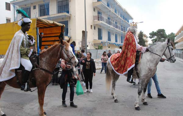idò sí dia 6 de gener, ben d’hora, els carrers de Capdepera, Cala Rajada i “extraradis” reberen la visita d’Els Reis. Tot el dematí hi havia grups d’al·lots que nirviosos guaitaven per veure si arribaven. Els més petits han de ser pacients perquè la comitiva va lenta, però l’espera sempre se veu recompensada.
