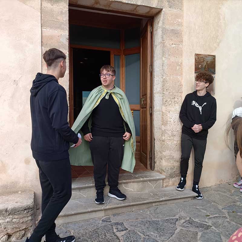 Els alumnes de 4art d’ESO expliquen la història del Castell als alumnes de 6è del CEIP de s’Alzinar i de S’Auba.