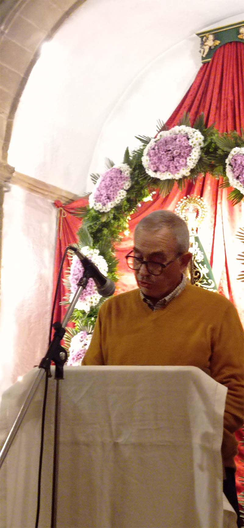 A veure la mare de Déu hi puja molta gent, tothom hi va quan pot, tots els que som aquí avui vespre hi desfilem en qualque moment. Jo acostumo a venir qualque diumenge, i sempre hi trobo dos amics. Quan som aquí, jo no li res avemaries a la mare de Déu, hi tinc més bé un diàleg, com si d’una mare i un fill es tractés. Li transmet les meves preocupacions, li demano solucions pels problemes, ja siguin locals o mundials. Que s’aturin les guerres, la fam i els abusos. I darrerament penso en el món que m’agradaria deixar al meu nét.