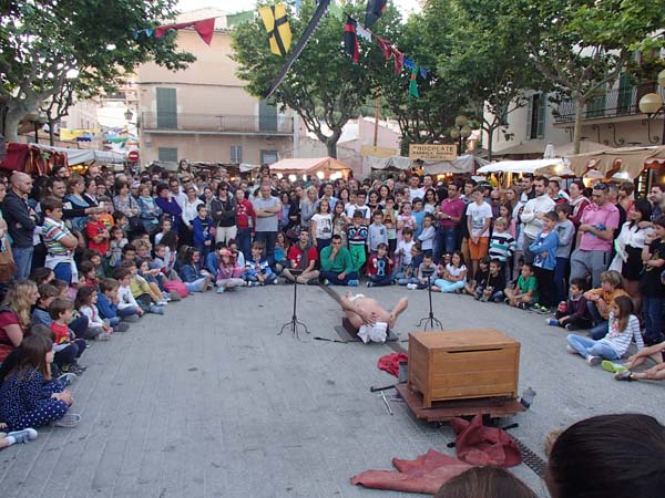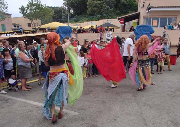 De bon matí, amb menys públic que altres vegades (així ens semblà, però només és una percepció) començaren les activitats d’animació amb el cercaviles dels Xeremiers Puig de Sa Font, mentre els artesans mostraven els seus productes. Cap a mig dia s’ambientà el mercat amb molta gent per tot arreu, des del castell a l’Orient.