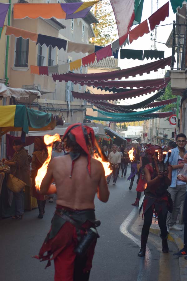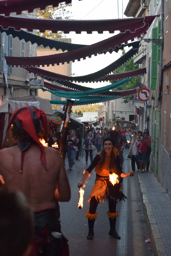Afortunadament el temps acompanyà i els carrers del recinte s’ompliren de visitants i els firaires pogueren vendre els seus productes. Com dissabte, hi va haver diverses actuacions d’animació de carrer i espectacles. No faltà el cercavila amb xeremies flabiols i tamborinos, de la mà dels xeremiers del Puig de Sa Font, petits espectacles itinerants, cercaviles temàtics, microteatre, malabars…tot per donar color al Mercat.