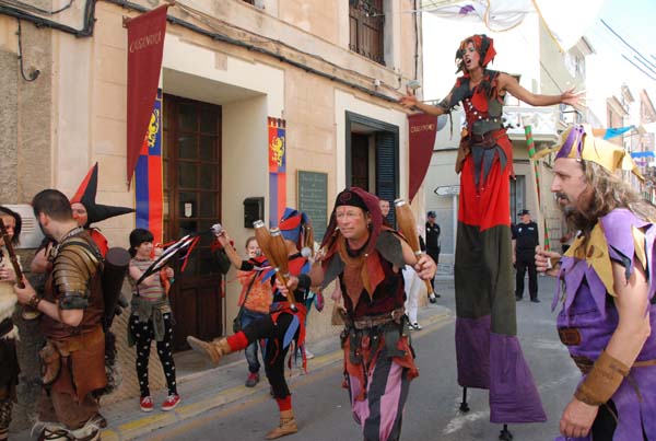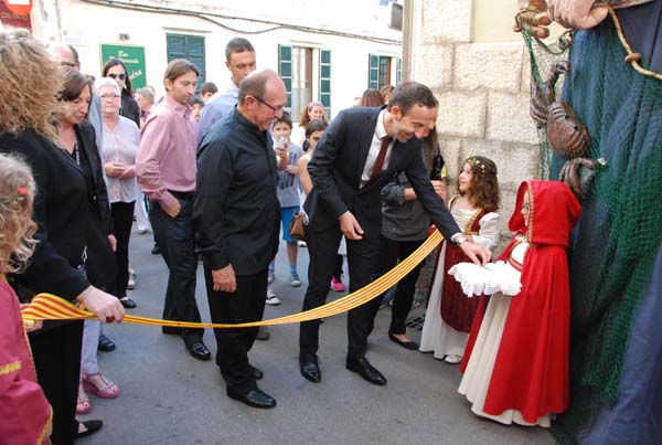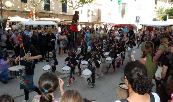 Abans d’entrar al recinte, es va fer, seguint el protocol, la tallada de la cinta que dóna per obert un Mercat que, de fet, ja era ben viu des de bon matí). A la Plaça de l’Orient coincidiren amb la sortida dels petits Dimonis Tamborers de s’Alzinar.