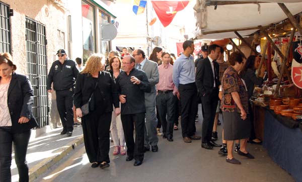 A les 18 hores va començar el passeig de les autoritats, des de la porta de l’Ajuntament fins a l’església del Castell, amb nombroses aturades a les paradetes del recinte de la fira, precedides del cercaviles que els obria pas.