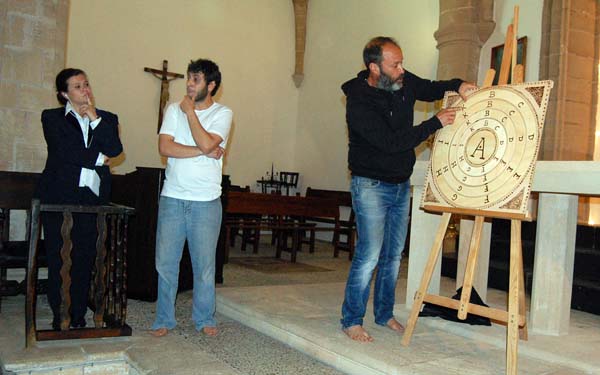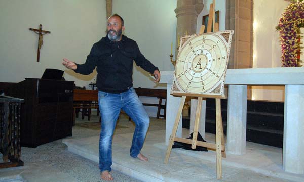 Però en Miró i el seu grup no s’hi posen per poc, i en devers un quart d’hora ens regalen una aproximació a l’Ars magna lul·liana i la seva “màquina”, un enginy que combina teories, subjectes i predicats teològics i am el qual volia demostrar la veritat cristiana de manera prou diàfana perquè inclús els musulmans més fanàtics poguessin entendre-la i acceptar-la.