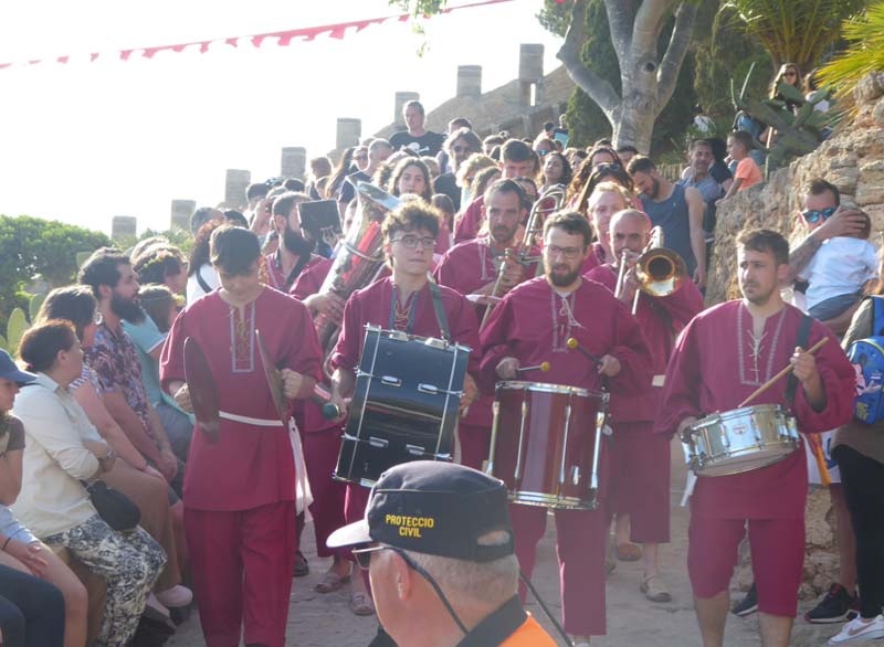 La banda de Música fidel a la seva participació en el Mercat Medieval va sortir des del castell, seguida d’una gran quantitat de públic, fins a la plaça de l’Orient, on interpretà tres peces musicals.