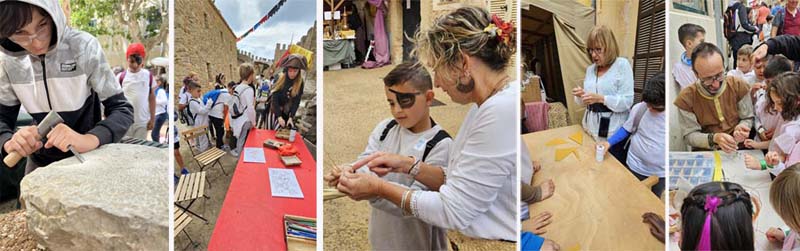 Com sempre alguns artesans reben els més petits que participen en alguns tallers (dissortadament, per un motiu o altres, sembla que de cada vegada n’hi ha manco, tallers i artesans), escolten com es fan alguns productes, juguen i participen dels espectacles.